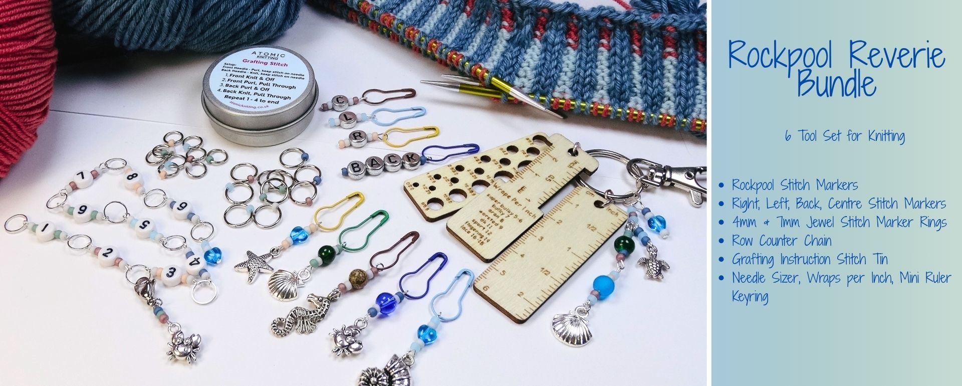Whether you're a seasoned pro or just beginning your knitting journey, Atomic Knitting has the perfect tools to enhance your creativity, improve your technique, and make every stitch count. From beautifully designed stitch markers to essential knitting notions, discover how our products can transform your knitting experience!